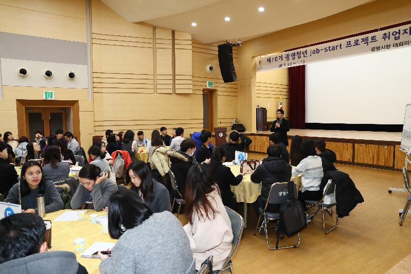 광명청년 잡스타트 프로젝트는 청년 구직자를 대상으로 시청 각 부서 및 사업소, 유관기관 등에서 근무하면서 맞춤형 1:1 취업 컨설팅과 취업교육 및 취업알선 등을 실시하는 ‘청년 취업지원 프로그램’이다. 2012년 7월 제1기를 시작으로 2017년 현재까지 총 772명을 선발해 이중 377명이 취업에 성공했다.