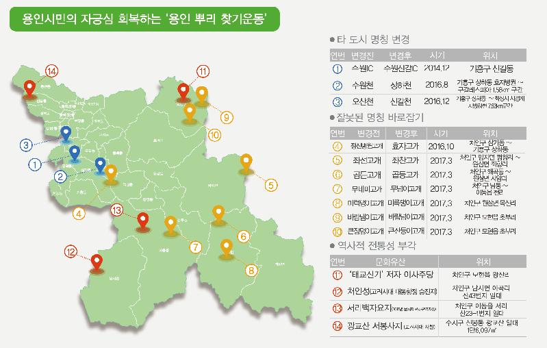 | 용인 뿌리 찾기 운동 현황도. |