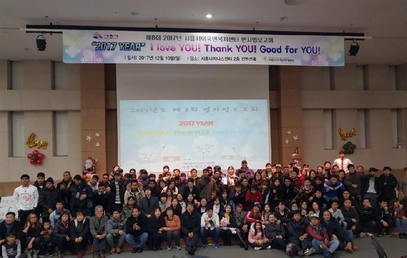 [미디어타임즈= 이옥수 기자] 시흥시외국인복지센터(센터장 이중교)는 지난 10일 시흥비즈니스센터 컨벤션홀에서 국가별 공동체 회원 및 센터이용자 등 300여 명이 참여한 가운데 ‘I love you, Thank you, Good for you' 라는 슬로건으로 2017년 시흥시외국인복지센터 연사업보고회를 개최했다.