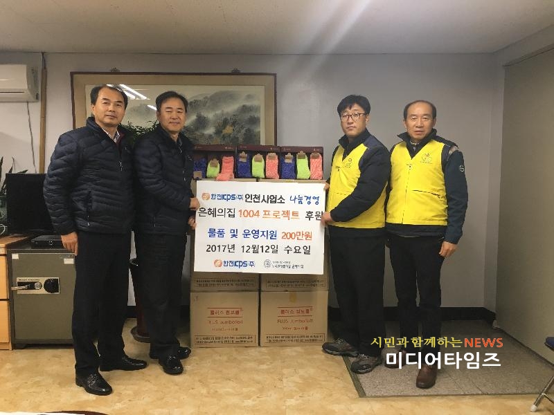 [미디어타임즈=홍기연 기자] 한전KPS 인천사업소(소장 이규흥)는 지역사회 소외계층을 위한 나눔경영 실천을 위해 13일(수) 오후 2시, 서구 심곡동에 위치한 노숙인재활시설 은혜의집(원장 김현철)을 방문하여 이용자들을 위한 수면양말 3종세트 300개(약 1백만원 상당)와 운영지원금 100만원을 전달하였다. 또한 은혜의집 겨울철 전기 안전을 위해, 전문 시설팀이 시설 전체에 대한 전기 안전점검 등의 봉사활동도 함께 진행 했다.