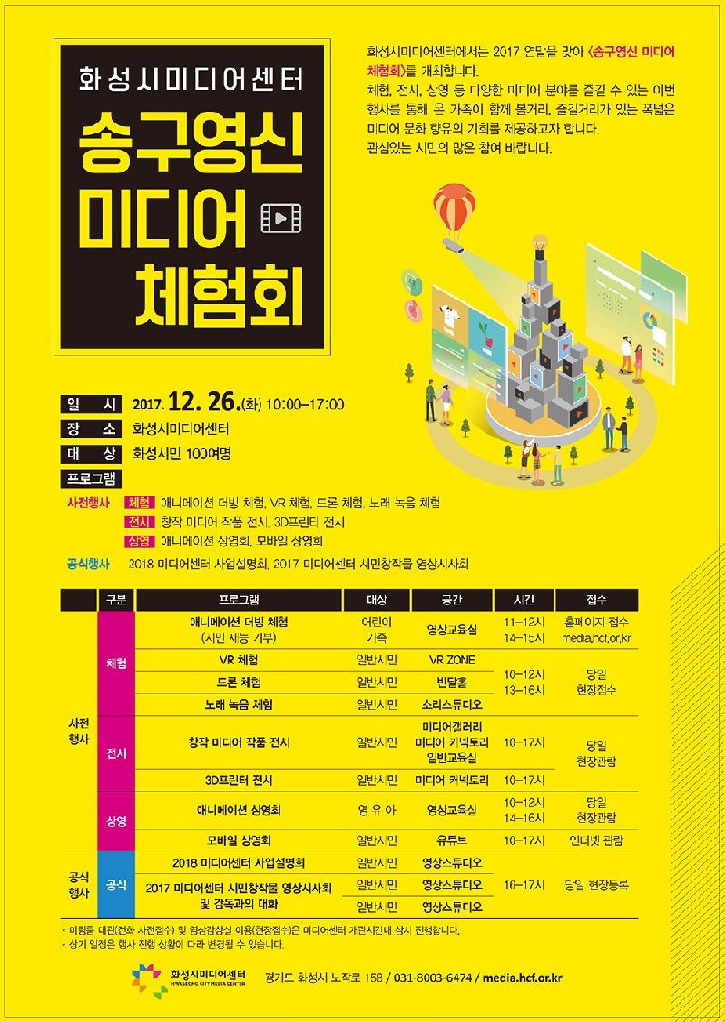 12월 26일 오전 10시부터 진행되는 이번 행사는 미디어 체험, 전시, 상영 등의 프로그램을 통해 다양한 분야의 미디어를 즐길 수 있는 기회를 제공한다.