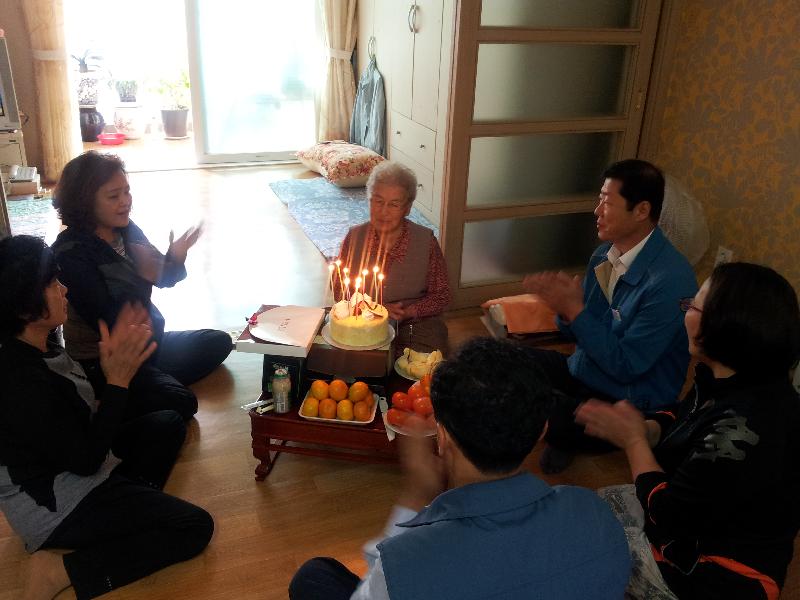 이번에 생신을 맞이한 권은순 어르신은 “이렇게 나이든 사람을 위해 생일을 챙겨줘서 너무 고맙다.”며 손은 잡으며 고마움을 전했고, 박종율 면장은 “정정하게 저희를 맞아주셔서 더 감사하다며 어르신 공경은 우리가 우선으로 해야 할 일이라며 건강하게 오래사시길 바란다.”라며 인사를 올렸다.