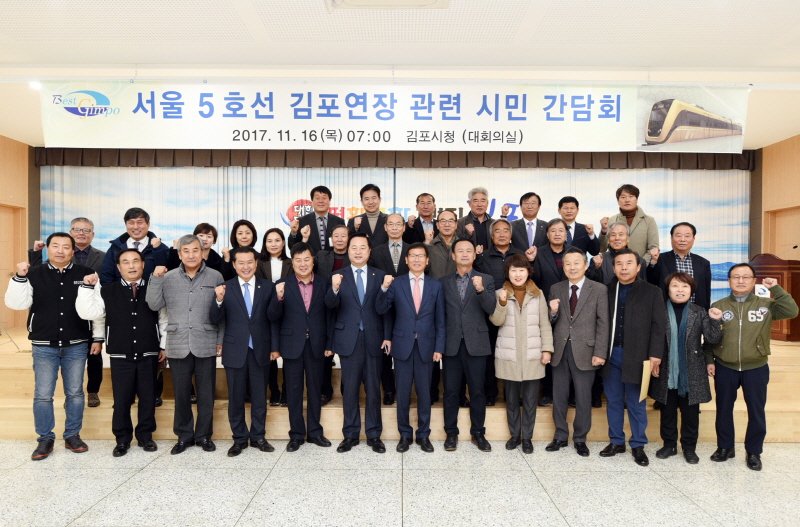 시는 지난 11월 시청 대회의실에서 유 시장과 지역 국회의원 및 도・시의원, 각계 유관기관, 시민단체 대표 등 40여명이 모인 가운데 “서울지하철 5호선 김포연장을 위한 시민 간담회”를 갖고 범시민추진위를 구성했다.