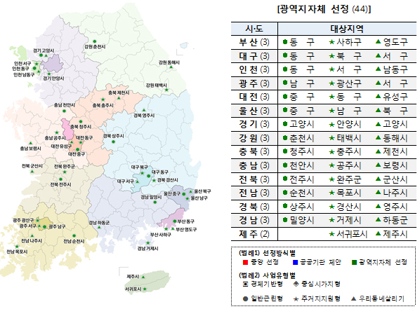 경기 8곳, 전북·경북·경남 각 6곳…지진피해 포항 흥해읍, 특별재생지역 지정