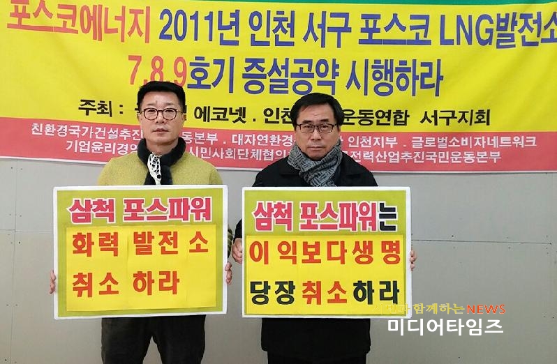 [미디어타임즈=문상수 기자] 글로벌 에코넷(상임회장 김선홍),친환경 국가건설추진국민운동본부(상임대표 이보영)는 14일 글로벌NPO센터에서 산업통산자원부 '제8차 전력수급기본계획(안) 발표에 대하여 긴급 기자회견을 개최했다.김선홍 글로벌에코넷 상임회장은 “제19대 대통령선거에서 미착공 신규 석탄화력발소 신설중단 문재인 대통령 공약까지 패씽하고 국민의 건강과 생명은 무시하며 기업의 이윤만 보장하는 산통부가 적폐의 원인이라”며 “신규 석탄화력발전소 허가는 살인면허를 발급이다.” 현재 운영 중인 53기의 석탄화력발전소는 미세먼지 주범으로 엄청난 대기오염을 초래하여 많은 수의 조기사망자를 초래하며 국민 건강권을 박탈하고 있다. 산업통산자원부의 삼척 포스파워 석탄화력발전소 건설 허가는 청정 삼척시민의 건강과 생명을 전혀 고려하지 않는 무책임한 일이다”라고 강조했다.살인면허에 가까운 미세먼지 주범 석탄화력발전소를 ‘에코’ ‘그린’ 등 친환경을 연상시키는 명칭으로 온 국민을 우롱하고 있고, 삼척포스파워 또한 현재 세계 최고 수준으로 꼽히고 있는 인천 영흥화력발전소 기준 이상으로 강화된 환경요염방지 설비를 장착하고, 연료하역 시에는 밀폐형 석탄하역기까지도입해 미세먼지를 연료 운반 때부터 최소화시킬 것으로 발표하였지만 2015년 인천영흥화력발전은 2015년 대기오염물질인 질소산화물을 4,011,237Kg과 황산화물 5,674,650Kg을 발생시켰고, 이 발생량은 서울시 대기오염물질 측정대상 노원열병합발전소외 16개 사업장에서 발생시킨 질소산화물 발생량 574,016Kg의 7배 수준이 어떻게 세계 최고 수준인가 라며 “돈보다 생명” “이익보다 국민 건강” 인데 이번 산통부의 삼척포스파워 석탄화력발전소 허가는 “미래 세대에겐 재앙”이 될 수 있다.