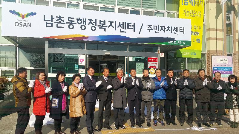 이번 현판식에는 곽상욱 오산시장, 손정환 오산시의회의장, 남촌동 단체장 및 단체회원, 충북 영동군 매곡면 이장단협의회 등 60여명이 참석하여 ‘남촌동행복센터’의 새로운 출발을 축하했다.
