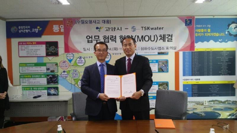 [미디어타임즈= 이옥수 기자] 고양시(시장 최성)와 ‘TSKwater’는 지난 14일 상하수도사업소 회의실에서 수질오염 사고 대응을 위한 업무협약을 체결했다.