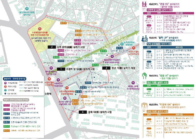 | ‘수원시 도시재생, 125만 수원의 관문으로 通(통)하다’ 도시재생사업 계획도. |
