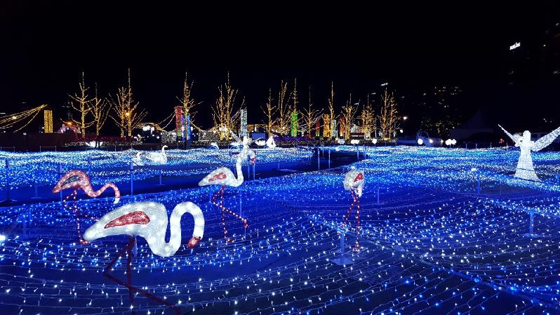 | 파란 빛의 물결이 넘실대는 ‘빛의 바다’가 펼쳐진 2017고양호수꽃빛축제장. |