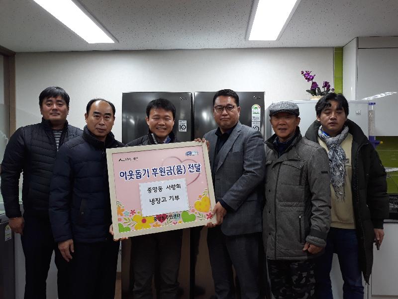 [미디어타임즈= 이옥수 기자] 용인시 처인구 중앙동은 지난 13일 봉사단체인 중앙동 사랑회가 홀로어르신들이 거주하는 용인시 사랑의집에 냉장고를 전달했다고 밝혔다.