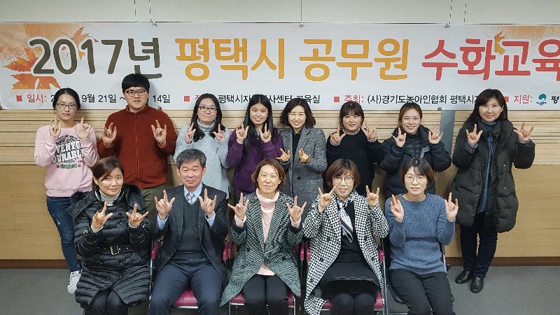 공무원을 대상으로 한 수화교육은 9월부터 매주 목요일 2시간씩 3개월간 진행됐으며, 평택시 수화통역센터 전문 수화통역사의 수어교육으로 기초 수화와 현장에서 유용하게 사용할 수 있는 관공서 업무용 수화를 배웠다. 특히 이날 교육은 농인들이 공유하고 있는 삶의 양식인 농문화도 이해하는 의미 있는 시간이 됐다.