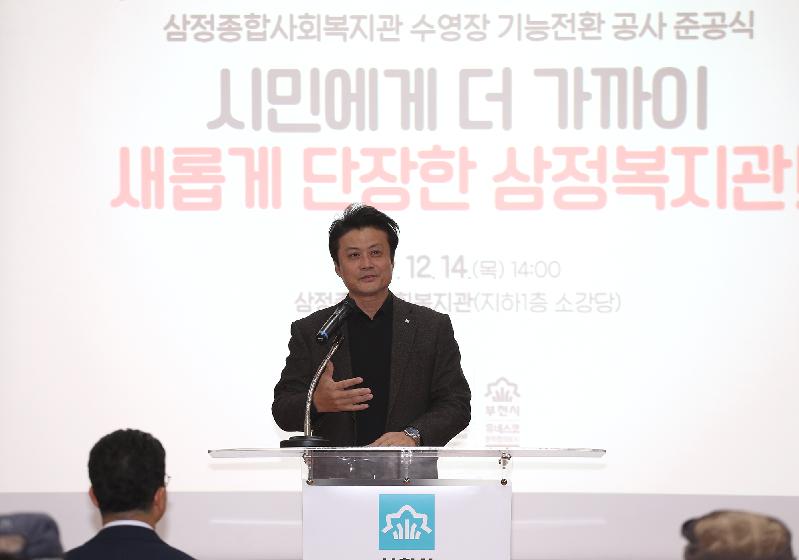 [미디어타임즈= 이옥수 기자] 부천시가 삼정종합사회복지관 수영장 기능전환 공사를 마치고 지난 14일 준공 기념식을 가졌다.