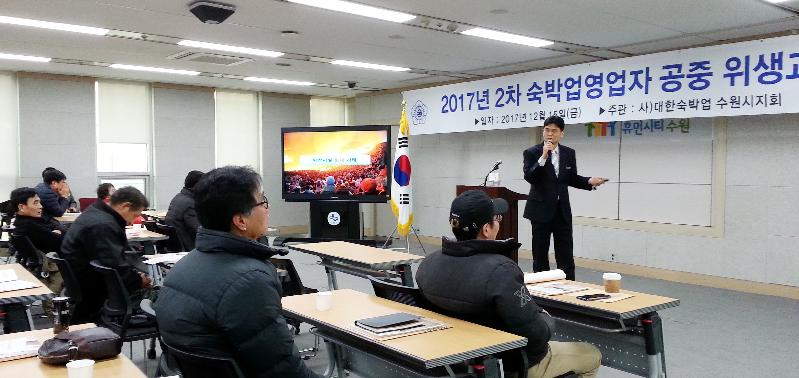 [미디어타임즈= 김광한 기자] 수원시는 15일 수원시청 중회의실에서 관내 숙박업소 영업자 110여 명을 대상으로 ‘위생교육’을 진행했다.