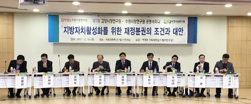 수원시정연구원·고양시정연구원이 15일 서울 국회의원회관에서 ‘지방자치 활성화를 위한 재정 분권의 조건과 대안’을 주제로 연 공동세미나에서 기조발제한 이재은 수원시정연구원장은 “지방정부가 자주 재정권을 회복하려면 지방소득세 세율 추가 인상, 지방복지세 신설, 지방소득세의 비례세화, 신세원 발굴 등으로 자주 재원을 확충해야 한다”면서 “또 특정 재원의 ‘일반재원(지방교부세)화’가 필요하다”고 말했다.