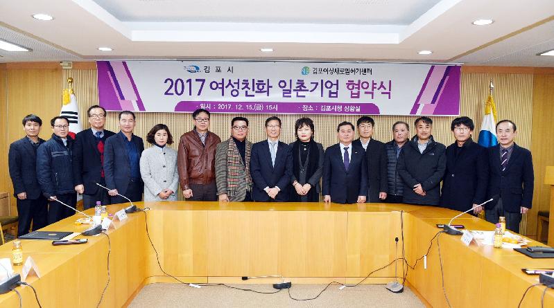 [미디어타임즈= 이옥수 기자] 김포시(시장 유영록)가 관내 12개 기업체와『2017 여성친화 일촌기업 협약식』을 지난 15일 김포시청 상황실에서 개최했다.