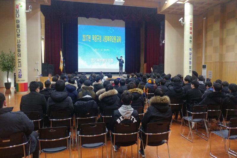 [미디어타임즈= 이옥수 기자]고양시(시장 최성) 덕양구는 지난 14일 덕양구청 대회의실에서 소속 사회복무요원을 대상으로 ‘2017년 사회복무요원 복무집합교육’을 실시했다.
