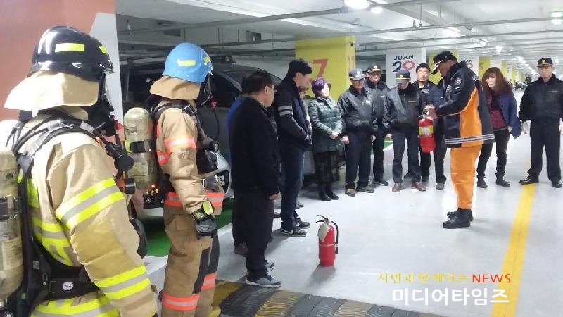 [미디어타임즈=문상수 기자] 인천남부소방서(서장 류환형) 주안119안전센터는 지난15일 관내 주안시민지하도상가에서 화재 대응능력 강화를 위한 합동소방훈련을 실시했다.불특정 다수가 이용하는 주안시민지하도상가 주차장을 대상으로 실시한 이번 훈련은 주안119안전센터 차량 3대 인원 9명과 주안시민지하도상가 자위소방대 20명이 참여하여 관계자의 초기대응능력 강화를 위해 실시 됐다.이날 훈련은 ▲자위소방대 초기대응조치 및 119신고요령 ▲관계 종사자 피난 및 대피 유도 훈련 ▲관계자 소방안전교육 등을 중점내용으로 실시했다.주안119안전센터장은 “화재 등 상황 발생 시 관계자들이 초기 대응으로 진압할 수 있다면 대형피해를 방지할 수 있다. 지속적인 훈련과 교육으로 화재 피해 절감에 힘쓸 것.”이라고 전했다.
