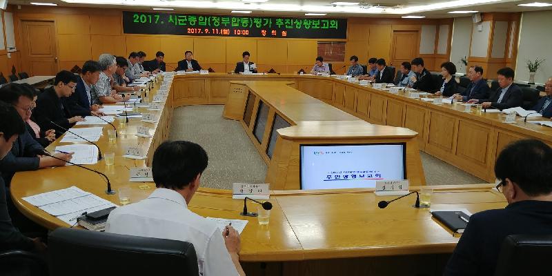 경기도 시·군 종합평가는 31개 시·군을 인구수에 따라 3개 그룹으로 구분하여 국정과제 및 도정시책과 관련된 일반행정, 사회복지, 지역경제, 보건위생, 지역개발, 문화여성, 환경산림, 안전관리, 규제개혁, 도 주요시책의 총 11개 분야 150개 세부지표에 대한 평가로 진행됐다.