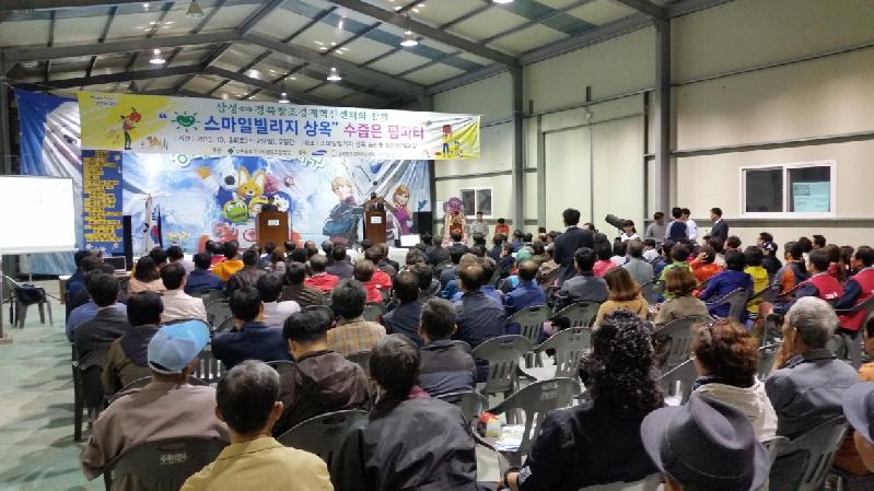 포항시는 창조농업의 선전기지로 육성하고 있는 상옥마을에서 10월 24일 농림축산식품부, 농촌진흥청, 경북농업기술원, 경북창조경제혁신센터 관계자, 명예이장, 상옥주민, 도시민 등 300여명이 참여한 가운데, “스마일빌리지 상옥‘ 수줍은 팜파티 행사를 개최했다. 이번 팜파티 행사는 상옥마을에서 창조농업과 관련된 기관 및 상옥주민등이 모여 행사를 통해 화합하고 도시민에게 스마일빌리지 상옥을 알리는 자리였다. 행사진행은 농산물 미니박람회 운영, 새끼줄 꼬기 대회 등 식전행사를 시작으로 창조마을 관계기관의 축사 및 격려사 및 유명쉐프(김락훈)를 초청 “맛, 멋 그리고 웃음”을 주제로 강연, 죽장지역 학생들에게 장학금 전달식 등으로 구성됐다. 특히, 도시민들을 초청하여 사과농장에서 1박 2일간 캠핑을 진행하여 큰 호응을 받았다. 포항시 김종철 친환경농정과장은 “스마일빌리지 상옥’을 창조농업의 전진기지로 육성중이며 이번 행사를 통해 상옥마을 주민들이 창조농업의 전진기지로의 자부심을 가지게 되었고 도시민에게 창조농업 및 지역농산물을 홍보하여 농촌지역 및 농촌경제에 활력을 불어넣을 수 있는 계기가 되었다”고 말했다.// 심후보 기자