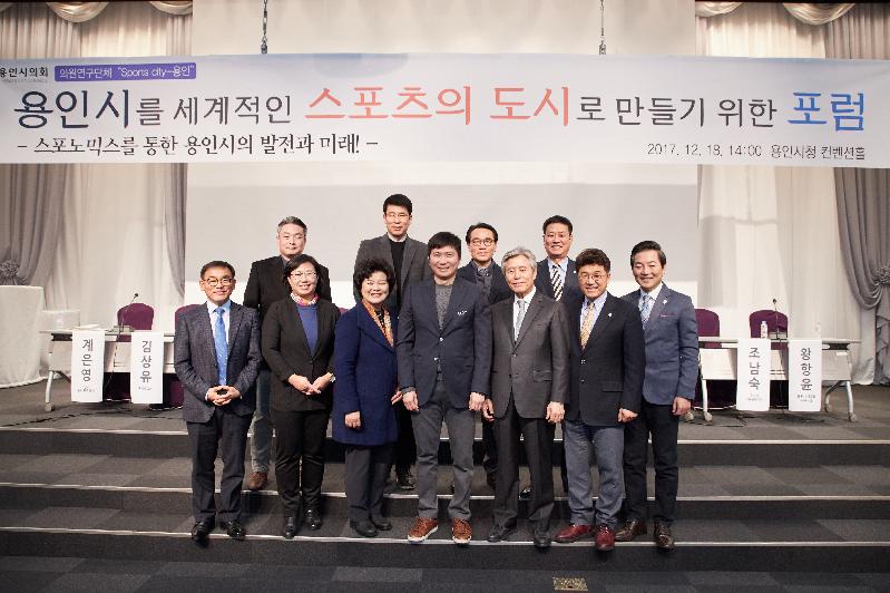 이날 포럼을 주최한 용인시의회 의원연구단체 ‘Sports city-용인’은 박원동(대표), 윤원균(간사), 남홍숙, 박만섭, 이건한, 정창진 의원(총 6명)으로 구성되었으며, 용인시가 가지고 있는 스포츠 인프라·유명인사 등 모든 자원을 최대한 활용해 세계적인 스포츠 도시로 조성하고, 체류형 스포츠 관광산업 발전·육성을 통해 우리시 위상을 높이고 지역경제를 활성화하는 방안을 모색하고 있다.