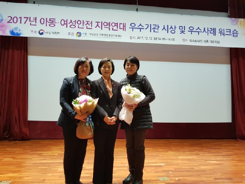 안산시 아동·여성안전지역연대는 올해 운영위원회와 실무사례협의회를 8회 실시해 지역 내 피해자 긴급구조 및 공동대응 방안 등 통합적인 지원을 신속히 진행했다. 또한 안산시 관내 초등학교 12개교를 대상으로 아동안전지도를 제작하여 학교 주변의 위험지역에 대해 경찰서와 해당부서에 통보하고 개선토록 하는 등 각종 안전사업을 적극 수행한 점에서 높은 평가를 받았다.
