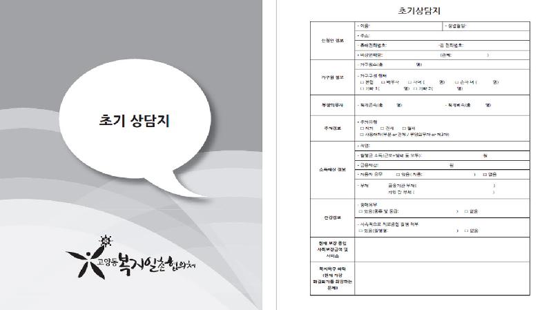 특히 복지사각지대 발굴 수첩은 고양동 관내 복지시설, 어린이집, 지역아동센터 등의 복지자원도 쉽게 파악할 수 있으며 체크리스트 형태의 초기상담지를 제공하고 있어 어려운 이웃이 처한 문제를 손쉽게 정리하고 적절한 복지서비스 탐색과 서비스 연계가 가능하다.