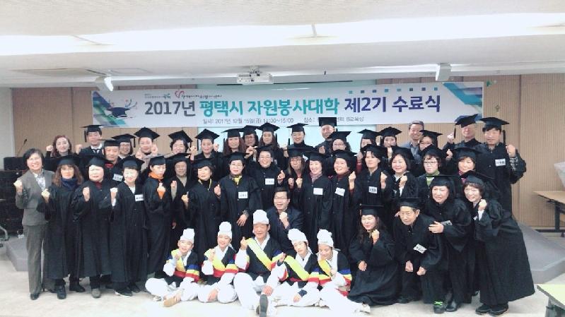 [미디어타임즈= 이옥수 기자] 평택시자원봉사센터는 15일 평생학습센터 B교육장에서 수료생 70여 명이 참석한 가운데 ‘제2기 평택시자원봉사대학 수료식’을 가졌다.