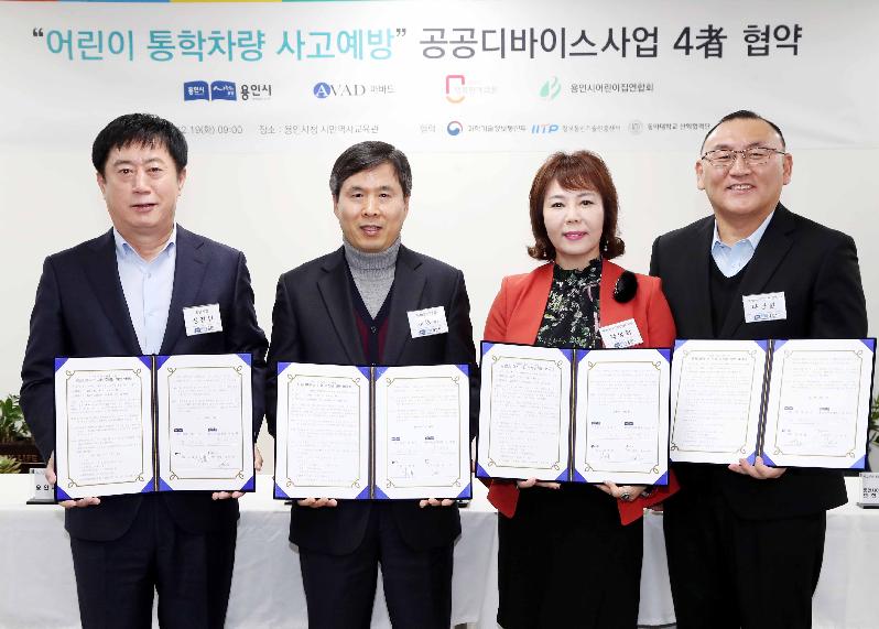 용인시는 19일 시청 시민사랑방에서 시스템을 개발한 아바드(주)와 재단법인 행복한에코폰, 용인시어린이집연합회 등 4개 기관이 ‘어린이통학차량 사고예방 공공디바이스사업’업무협약을 맺었다고 밝혔다.