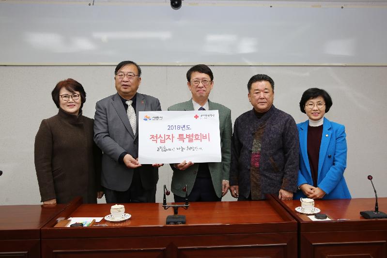 매년 적십자 회비를 납부하고 있는 시흥시의회는 올해 110만원의 특별회비를 전달하고 의회를 내방한 적십자사 관계자들과 모금활동 애로사항 및 나눔문화 확산에 대한 의견을 나눴다.