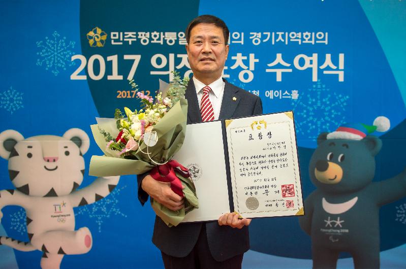 [미디어타임즈= 이옥수 기자] 용인시의회 박만섭 의원이 19일 용인시청 에이스홀에서 열린 민주평화통일자문회의 경기지역회의 ‘2017 의장표창 수여식’에서 민주평화통일자문회의 의장인 대통령 표창을 수상했다.