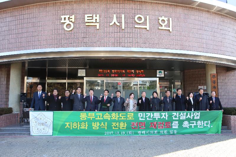 시의회는 건의문에서 “동부고속화도로 사업은 자연부락을 단절시키고, 무분별한 자연환경 훼손 및 소음·분진 등으로 인한 환경오염을 유발하여 지역민들의 쾌적한 주거환경에 막대한 피해가 예상되므로 고속화도로의 건설을 지하화 방식으로 전환하라”고 강력히 촉구했으며, 이날 채택된 건의문은 평택시에 전달할 예정이다.