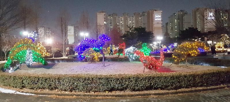[미디어타임즈= 김광한 기자] 수원시 효원공원(팔달구 인계동) 내 토피어리원(園)이 형형색색 점멸 LED등으로 단장해 연말연시 분위기를 한껏 띄우고 있다.