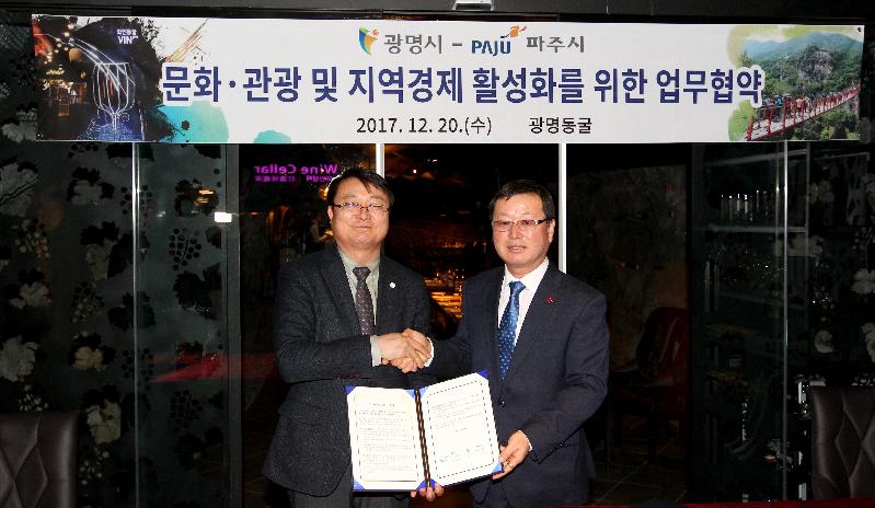 [미디어타임즈= 신훈종 기자] 광명시(시장 양기대)는 20일 광명동굴에서 경기 파주시와 문화·관광 및 지역경제 활성화를 위한 업무협약을 체결했다고 밝혔다.