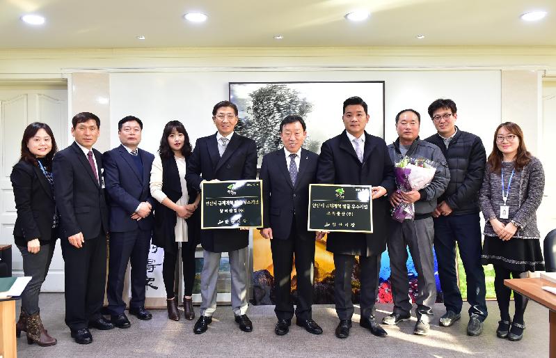 [미디어타임즈= 신훈종 기자] 안산시(시장 제종길)는 지난 18일 시장실에서 안산시 규제개혁 발굴 우수기업으로 선정된 팔곡일동 소재 삼미산업(주)와 부옥물산(주)에 현판을 전달했다.