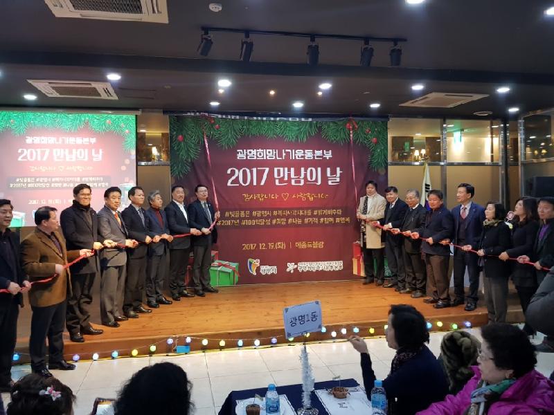 [미디어타임즈= 신훈종 기자] 광명희망나기운동본부는 2017년 한 해 광명시 복지사각지대를 위해 아낌없는 지원을 해 준 후원자들과 지역 내 어르신들에게 감사의 마음을 전하고자 지난 19일 ‘2017년 만남의 날’ 행사를 개최했다.