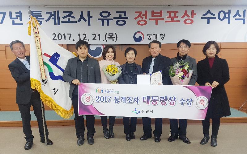 [미디어타임즈= 김광한 기자] 수원시가 통계청이 주관하는 ‘2017년 통계조사 업무 유공기관’에 선정돼 대통령 기관표창을 받았다. 시상식은 21일 정부대전청사에서 열렸다.
