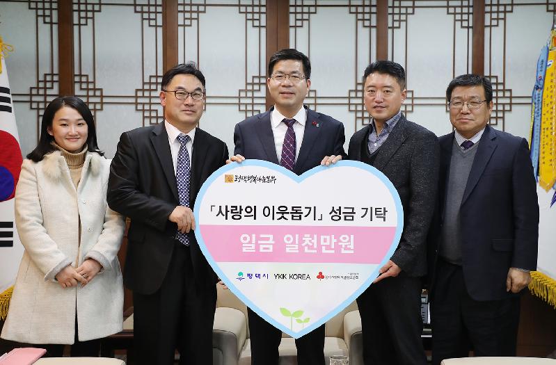 YKK한국(주)는 창업자 요시다 타다오의 ‘타인의 이익을 꾀하지 않고는 스스로의 번영도 없다’는 ‘善의 순환’ 기업정신 아래 사회공헌 활동의 일환으로 매년 취약계층에 성금을 지원하고 있다.