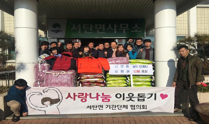 홍석완 서탄면장은 “추운 날씨에도 어려운 이웃에게 따뜻한 마음을 전달한 단체에 감사를 전하며 기탁한 물품은 저소득 소외계층을 위해 소중히 전달하겠다”고 밝혔다.