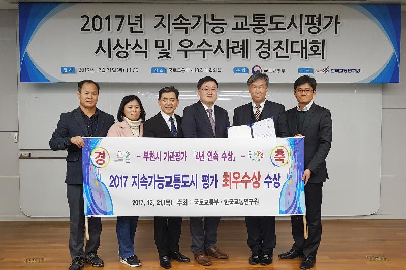 [미디어타임즈= 이옥수 기자] 부천시가 국토교통부 주관 ‘2017년도 지속가능 교통도시’ 종합평가에서 최우수상을 수상했다.