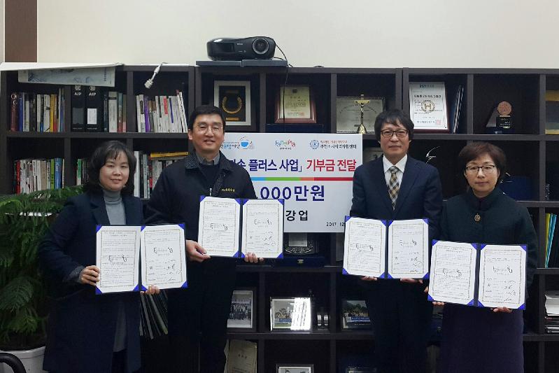 [미디어타임즈= 이옥수 기자] 부천시는 지난 21일 대덕강업(대표 모휘), 부천희망재단(상임이사 김범용), 소사지역자활센터(센터장 송예순)와 2018년 효자손 플러스 사업을 위한 4개 기관간 업무협약을 체결했다.