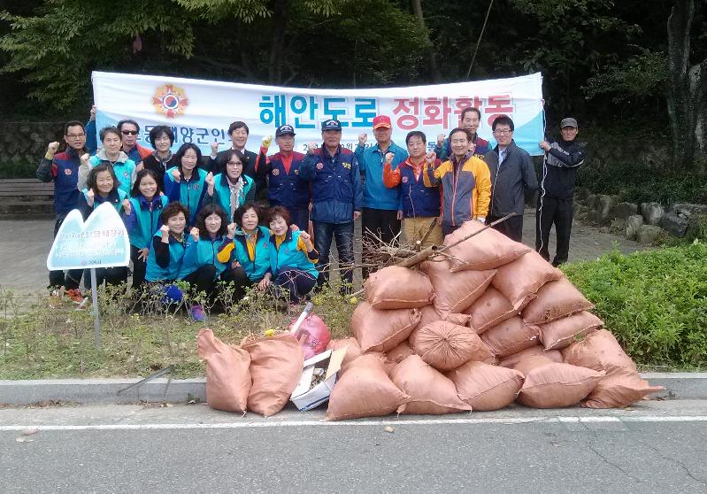 능포동재향군인회(남:김두경, 여:조세선)는 지난 26일 오전 10시부터 능포항 동편방파제 및 소공원에서 환경정화활동을 전개했다.