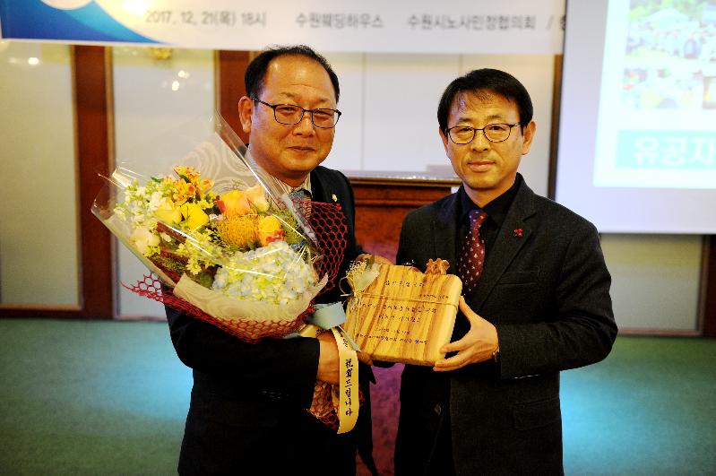 [미디어타임즈= 김광한 기자] 수원시의회 이종근(더불어민주당, 정자2․3동) 의원이 지난 21일 웨딩하우스에서 열린 2017년도 노사민정 성과보고회에서 수원시 노사민정협의회로부터 감사패를 받는 영광을 안았다.