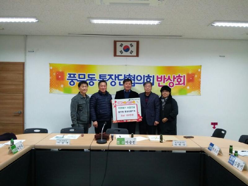 같은날 김포시 풍무동통장단협의회는 작년에 이어 올해에도 성금 100만원을 기탁했다. 이충원 풍무동통장단협의회장은 “작은 돈이지만 정성을 모았다. 어려운 이웃들에게 작은 정성이나마 큰 힘이 되었으면 좋겠다”고 전했다.