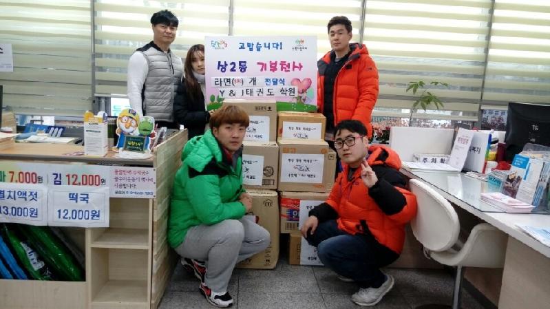 용인대 Y&J태권도 학원(유재민 원장)에서는 지난 연말에도 관내 어려운 이웃들을 위해 학원생들이 직접 모은 라면을 전달해 나눔을 실천한 바 있다.