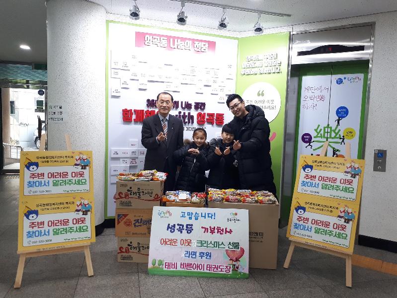 - 성곡동 태비 바른아이 태권도장 친구들, 주변 어려운 이웃에게 하나하나 모은 라면 후원