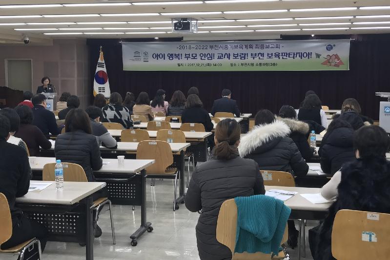 [미디어타임즈= 이옥수 기자] 부천시는 지난 21일 보육사업의 기본방향과 정책수립을 위한 ‘2018~2022 부천시 중기보육계획’ 연구용역 최종보고회를 개최했다.