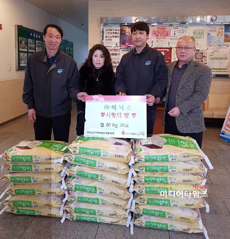 | ㈜ 에닉스 고병선 대표‘사랑의 쌀’기탁 사진. <ⓒ미디어타임즈> |