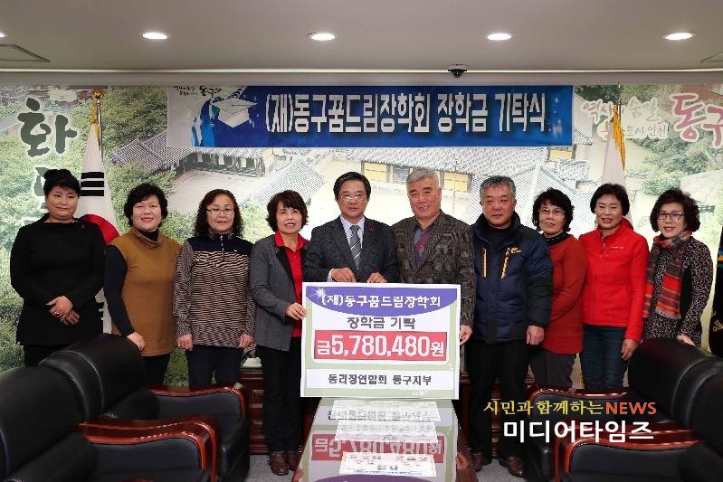 | 통리장연합회 동구지회 (재)동구꿈드림장학회 장학금 기탁식 사진. <ⓒ미디어타임즈> |