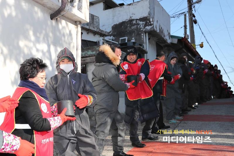 [미디어타임즈=문상수 기자] 인천 동구(구청장 이흥수)는 26일, 연예인합창단ACTS29(단장 이무송)이 주최하고 구세군(사령관 김필수)이 후원하는 따뜻한 겨울나기‘사랑의 연탄나눔행사’를 가졌다.이번 연탄 나눔행사는 연예인합창단 ACTS29가 나눔 콘서트 등을 개최해 얻은 수익금으로 연탄 1만장을 마련해 동구 저소득 소외계층 29세대에 기탁한 것으로, 이무송 단장을 비롯한 46명의 연예인합창단원과 구세군대한본영, 남서울지방본영, 송림영문 봉사단과 동구 자원봉사자, 지역 주민들이 함께 참여한 가운데 진행됐다. 연탄나눔 기부식이 끝난 이후 3개조로 나뉜 봉사자들은 송림동의 헐떡고개라 불리는 고도가 높고 경사진 곳을 골목골목 들어가면서도 즐거운 표정으로 차례차례 연탄을 날라 보는 이마저 흐뭇하게 했다. 이날 연탄을 받은 송림동 주민은 “요즘 추운날씨가 계속되어 걱정이 많았는데 텔레비전에서만 보던 분들이 와서 연탄도 날라주고 위로의 말도 건네주어 정말 감사하다”고 전했다. 한편 2012년 2월 창단된 연예인 합창단 ACTS29는 가수 이무송 단장을 주축으로 가수 노사연, 코미디언 김지선, 류경진, 탤런트 한재석, 모델 박둘선 등 각 분야별 100여명의 크리스찬 연예인들이 매주 모여 함께 예배를 함은 물론 나눔 열림음악회, 자살방지 콘서트 등 다양한 공연과 앨범 발매 등을 통해 소외된 이웃을 위한 나눔 활동을 활발히 펼치고 있다.