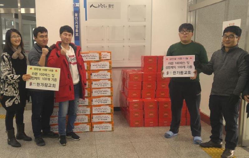 [미디어타임즈= 이옥수 기자] 용인시 처인구 역삼동은 관내 한가람교회가 지난 23일 청년, 학생들이 용돈을 모아 직접 만든 수제 케익 100박스와 라면 100박스를 어려운 이웃들을 위해 기탁했다고 밝혔다.